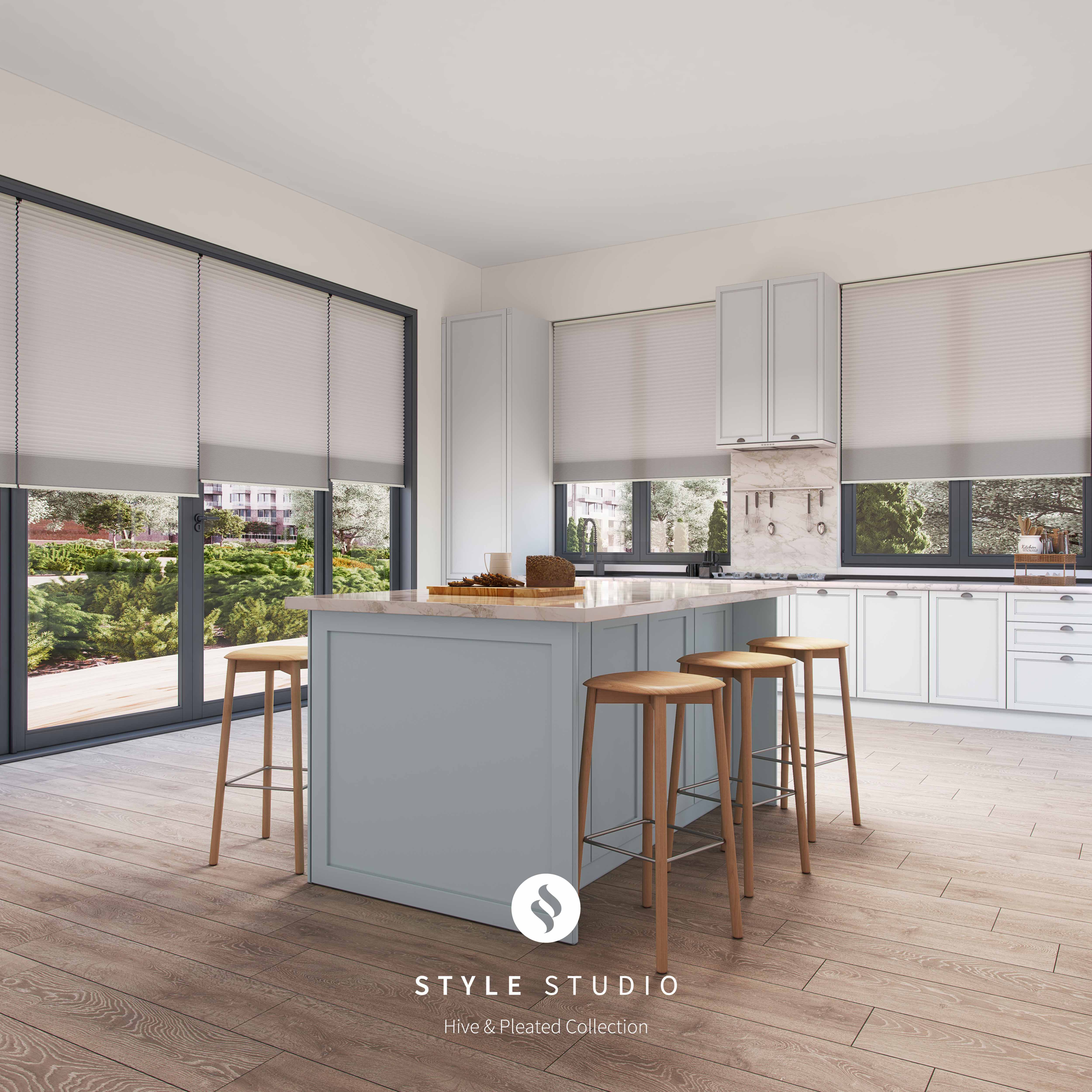 These best-selling blinds are a popular solution to the door dressing problem. By sitting securely within their own framework and attaching directly onto the glass, they avoid becoming tangled in any breezes when the doors are opened. Available in Roller, Pleated, Venetian and Wooden Venetian styles, Perfect Fit frames can be incorporated into almost any design you like with an assortment of finishes. Think blackout, moisture resistant or sheer to name just a few. Furthermore, by fitting flush to each edge of the window, these blinds aid thermal insulation and prevent that chill that some doors can create.